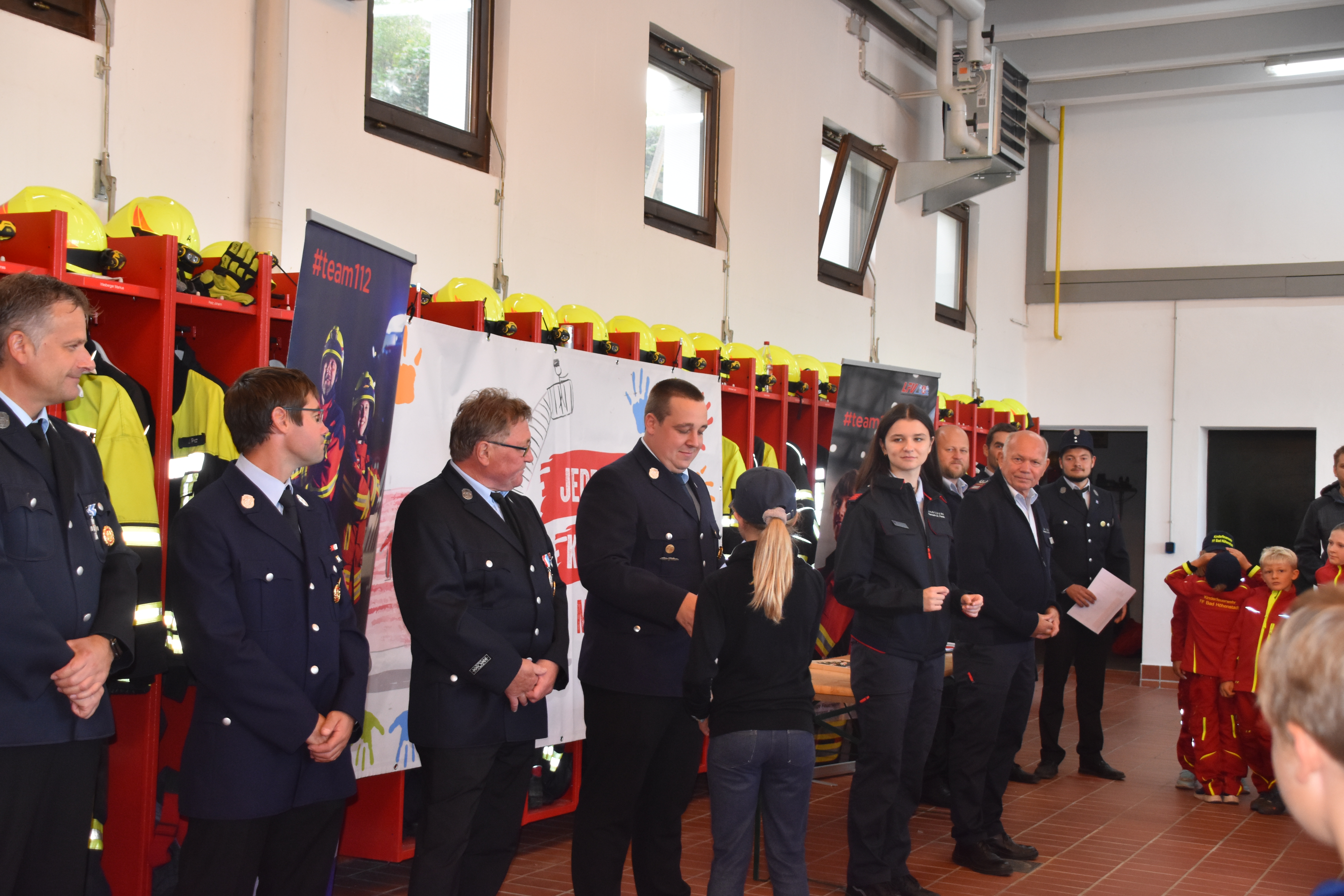 Ihre neu erworbenen Kenntnisse und Fertigkeiten durften sie aber nicht nur den Führungskräften ihrer Heimatfeuerwehr zeigen. Es waren auch offizielle Vertreter des Kreisfeuerwehrbandes Passau, Ludwig Hack und Sophie Jetzinger als hauptverantwortliche Prüfer, anwesend. Und die staunten nicht schlecht, was die Prüflinge schon alles gelernt hatten.