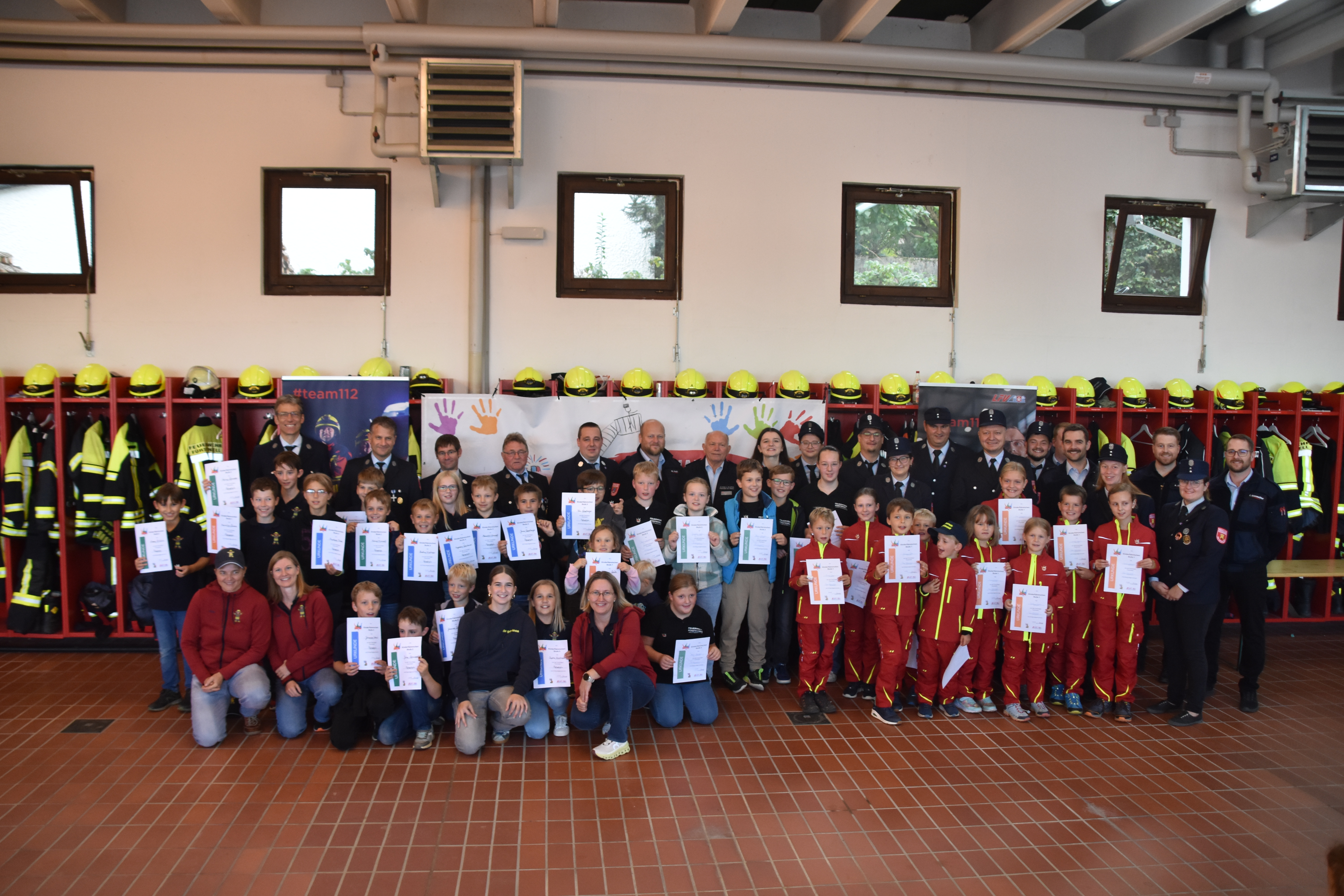 Sehr zur Freude aller beteiligten Betreuer und Feuerwehrführungskräfte legten die Mädchen und Buben Glanzleistungen hin und hatten sich ihr „Kinderflämmchen“ redlich verdient.